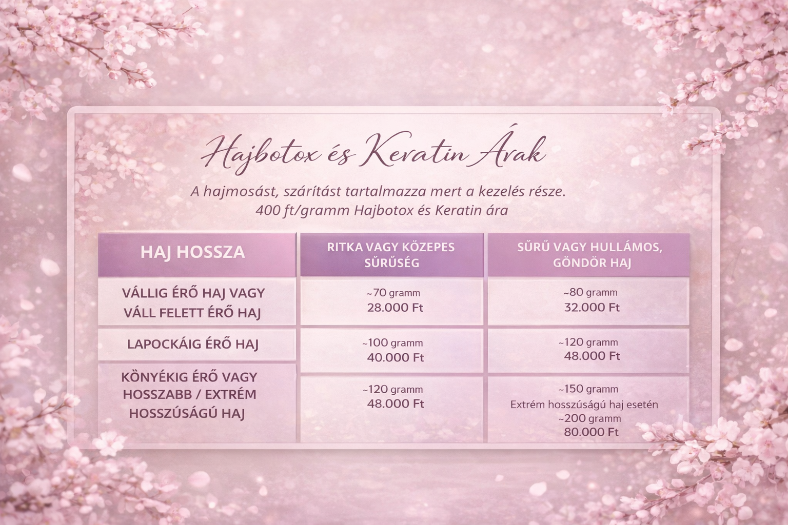 A teljes szolgáltatás ára hajhossztól és hajtömegtől függetlenül: